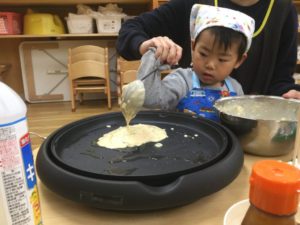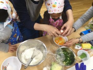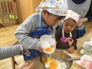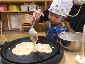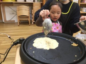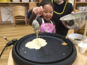 みんなで作るお好み焼きは特別おいしいね。