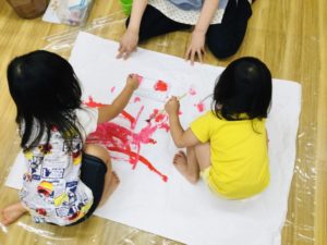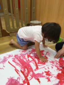 自分たちよりも大きな画用紙に、絵の具でお絵描きをしました🎨