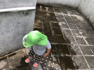 こちらから驚くぐらいそおっとそこを歩いて水が洋服や体などにつかない様にしていました