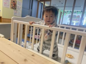 みてみて〜❗️初めてつかまり立ちができたよ😉💚