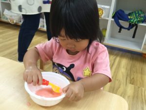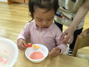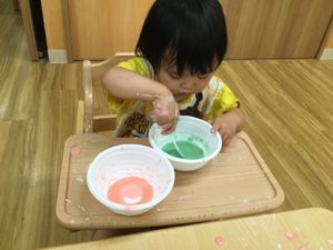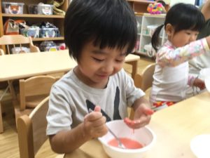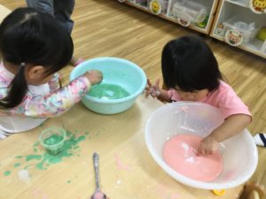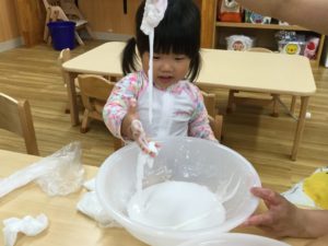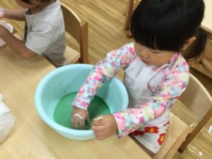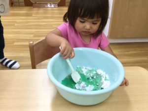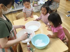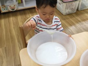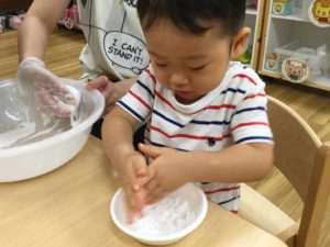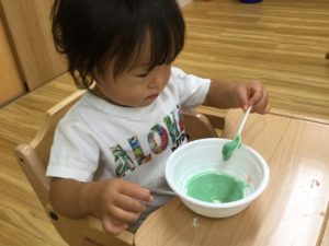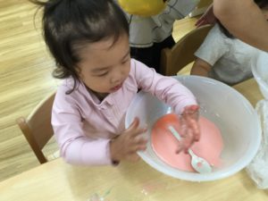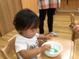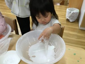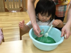 コネコネしたり、スプーンですくったり、触ってみよう😀