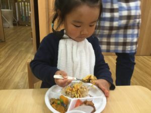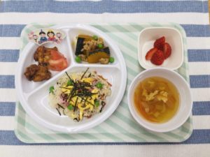 鶏肉の竜田揚げ、かぼちゃのそぼろ煮