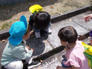 「ダンゴムシがいるよ」とお友達の声に