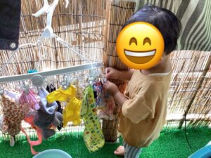 1年前、指でピンチを広げて干すことが難しかった子が、今では自分の指の力で干すことが出来るようになり、成長を感じました。