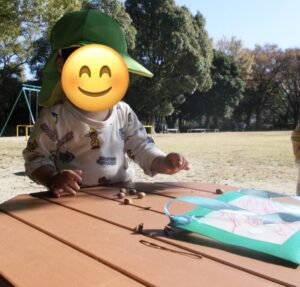 楽しんだり、大きな石の上でドングリを転がしてみたりなど、