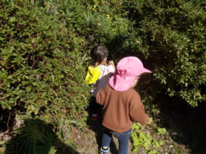 木と木の間の狭い道に入ってみたり、少しでも隙間があると