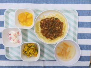 スパゲティナポリタン、白菜とにんじんのスープ、