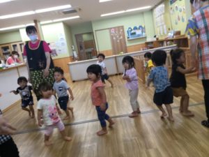 お膝を叩いてみんなで「おはよう☀」のご挨拶😁