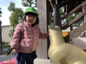 金のキツネ🦊さんをなでなで☺️