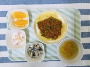 ミートソーススパゲティー🍝、白菜スープ🥬