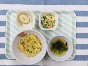 五目チャーハン、 キャベツのスープ