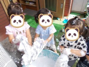 日中はまだまだ暑い日が続いているので泡あそびをしています🫧