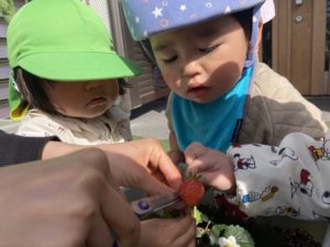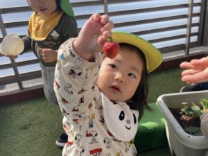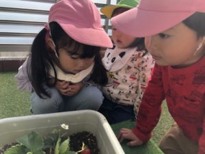 “いちごが赤くなってきたね!😊💕“