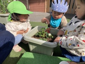 “いちごが赤くなってきたね!😊💕“