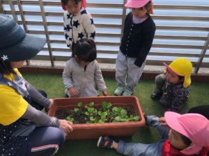 園に戻って、小松菜の間引きのお手伝いをしてもらいました🌱✨