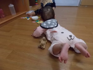 入園当初は一人でお座りしたり、うつ伏せで顔を上げる体勢がまだ少し不安定で
