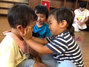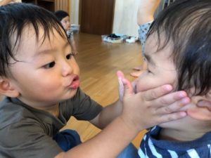 お友だちの顔を… むにゅ〜💓