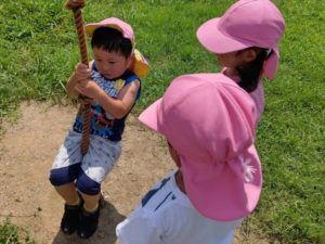 小さい子たちがお散歩から帰ろうとしていると、大きい子たちと遭遇😊✨