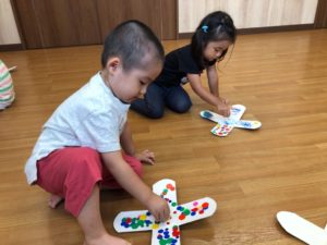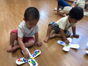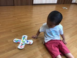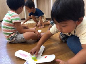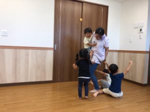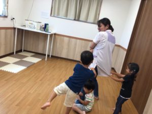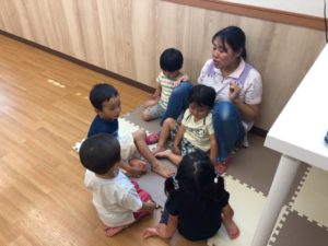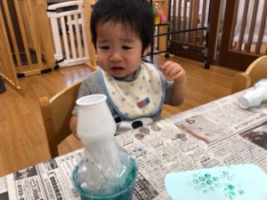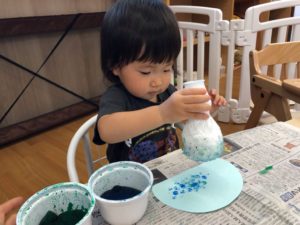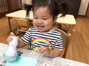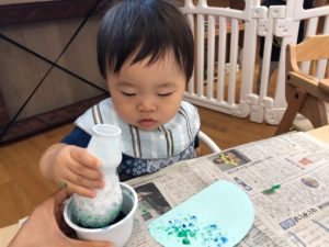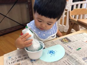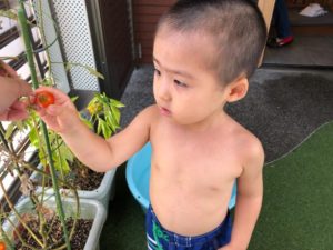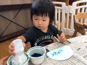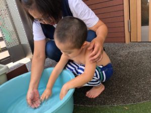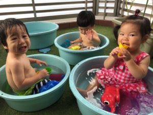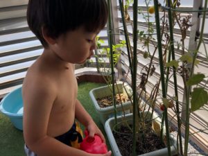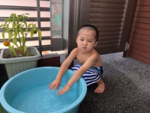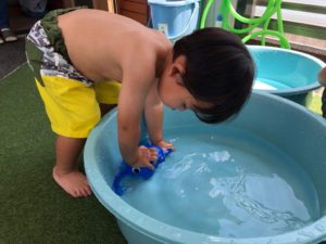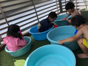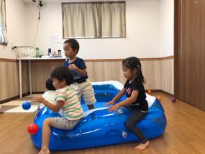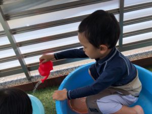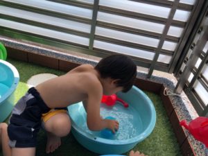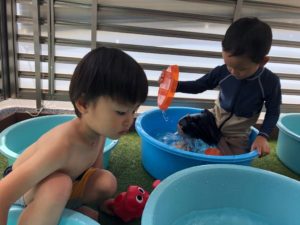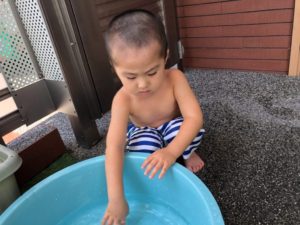 お祭りって何するの❓と聞くと“ビニールプールで遊ぶ”と教えてくれました✨