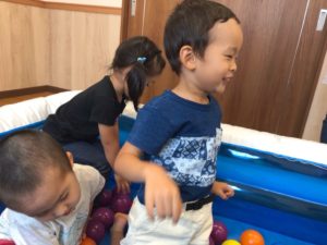 お祭りをしたいという声でボールプールを出すことに