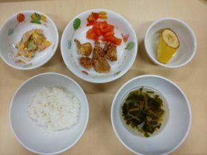 ・鶏肉の唐揚げ、トマト