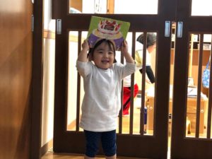 絵本を頭に当てて… へーんしんっ😆✨