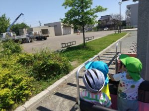 園の前の道にトラックやミキサー車が停まっているのを見つけると