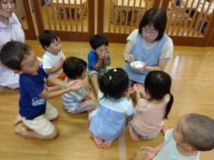 “トイレに行こう“と伝えたら手を洗っていて、皆食べる気まんまんだったので…