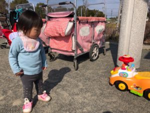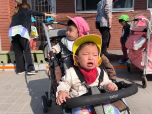 少し泣けちゃったけど、ベビーカーが動き始めたらご機嫌に😌💓