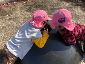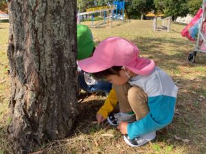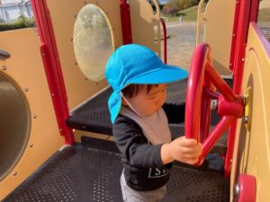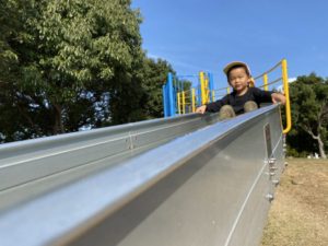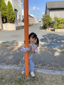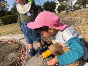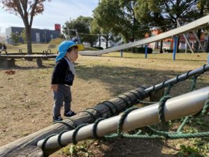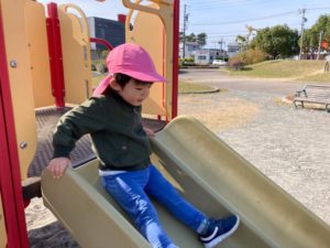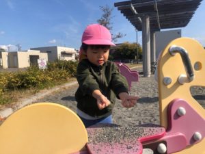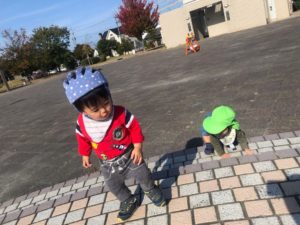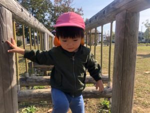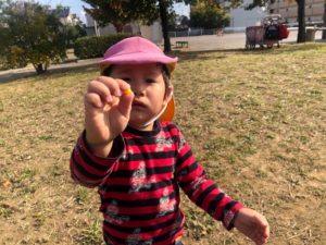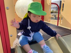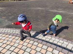 お散歩カーを降りた瞬間“あっ“と言いながら駆けて行ってじ〜
