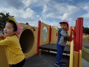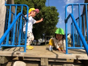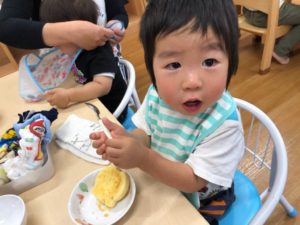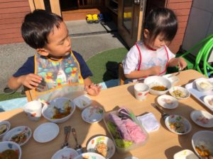 2歳は園庭で食べました🍱