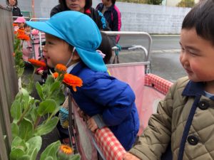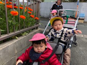大きい子たちは田んぼ道を歩いてお散歩😊
