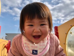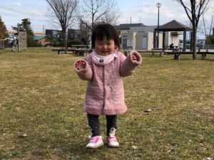 ピースしてみて〜😊というと、頑張ってくれました!😆💕