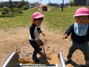 大きい子2人は、みんなと別れて鯉のぼり探し…