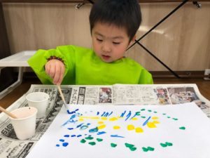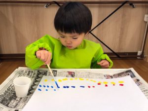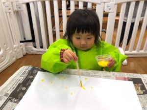「黄色と赤混ぜたらオレンジになったー!😳」