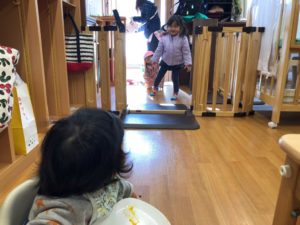 ご飯中のお友だちが気になって中々入って来ないね…😆