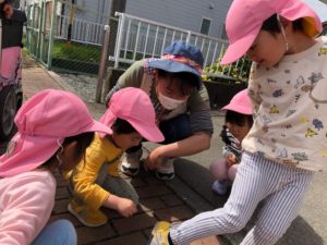 向こうの通りに小さい子たちが😳💕