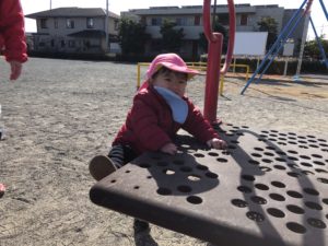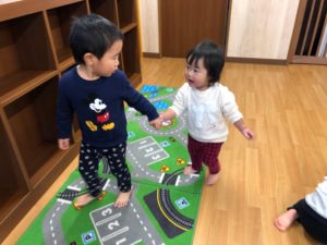 “私と一緒に歩こ〜☺️💕“って手を伸ばしたら、一緒に歩いてくれたよ😊
