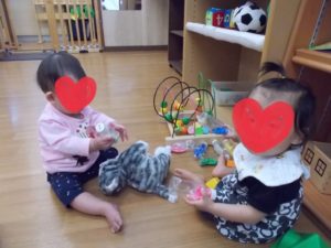 同じ0歳児のTちゃんと一緒に遊んだり、機嫌良く声を出して
