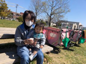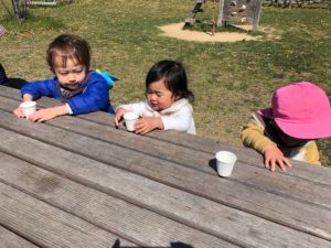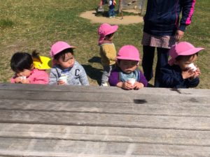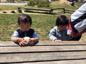 公園に着いたらお茶を飲んで休憩😌