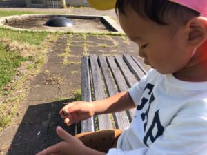 どんぐりの皮をペリペリと剥いてます😀