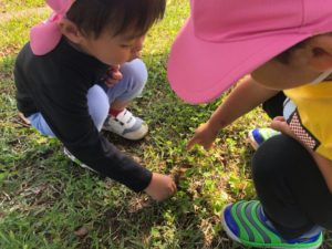 どんぐりの皮をペリペリと剥いてます😀