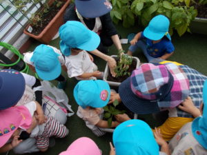 今度は…ピーマン🫑とトマト🍅の苗を皆で植えてみました。