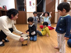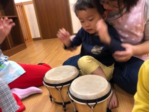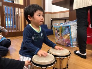 今日は太鼓を叩いてご挨拶をしてみよう😊✨