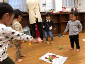 鬼さんにボールを…えいっ😊