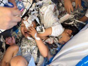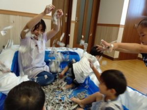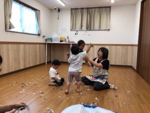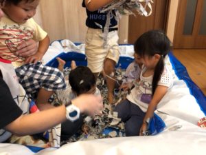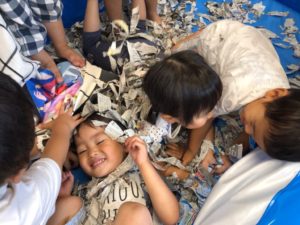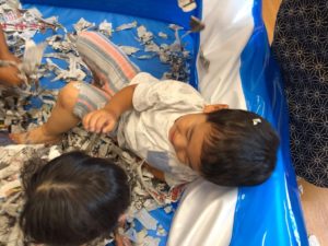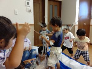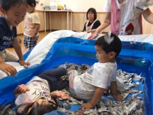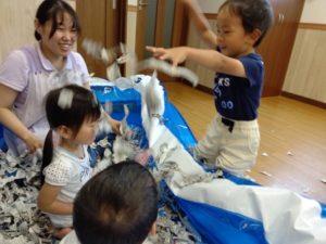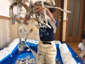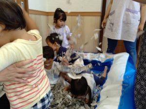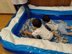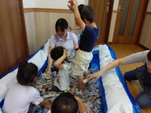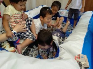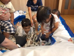 大きい子たちは、新聞紙を使って遊びました😊💕