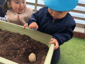 じゃがいもの種芋を植えるのをお手伝いしてもらいました😊💕
