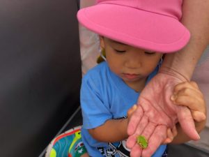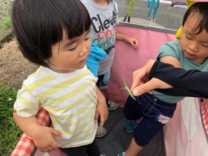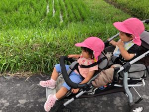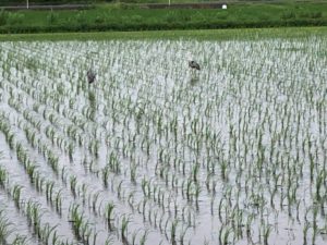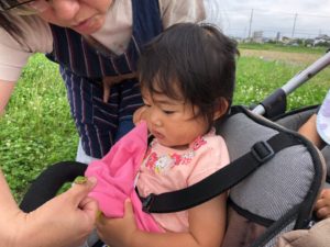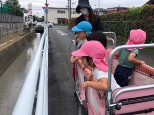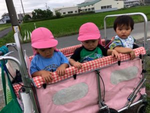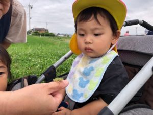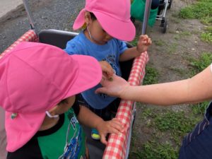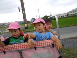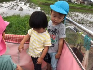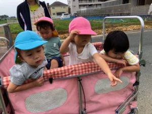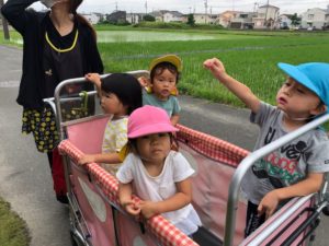 先に帰る組は園の東の田んぼ道へ😃