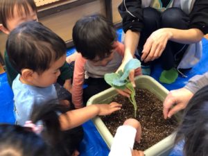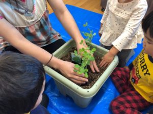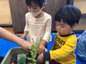ブロッコリーさんとスナップえんどうさんに、土のお布団をかけてあげました☺️