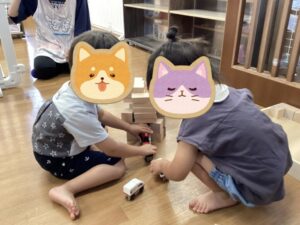 自分たちで積み木を使って、どのように遊ぶか考え色々な遊び方でそれぞれ楽しんでいました。